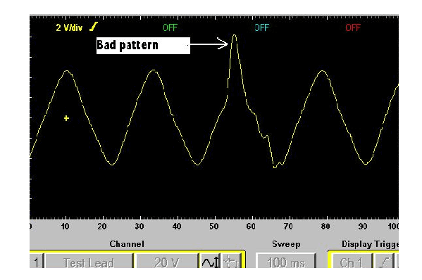 Picture 2: Next, a scope is installed on the vehicle speed sensor itself. This is to isolate the bad pattern, either to the computer system, the wiring or the sensor area. It shows the problem is at the sensor area.